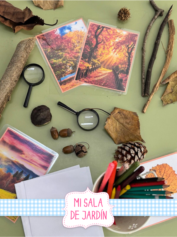 Es un punto de partida pensado para que el material sea un puente hacia el parque o el patio, y para que el parque se meta en tu sala, invitando a comparar las tarjetas con lo recolectado afuera.